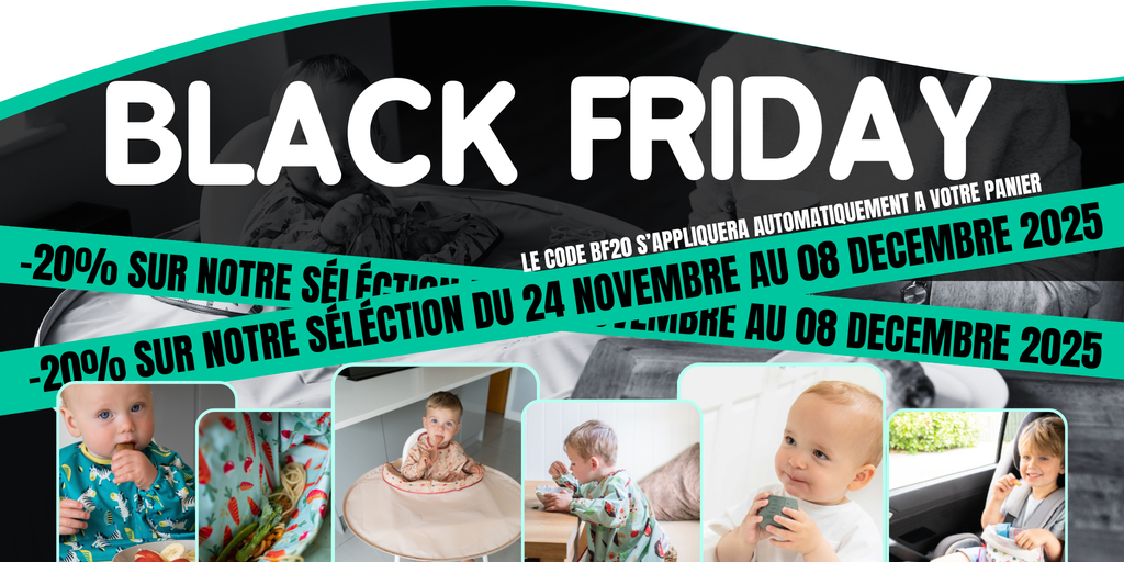 Bavoir compact s'attache à votre chaise haute ou table à manger pour rattraper la nourriture qui tombe et les éclaboussures.