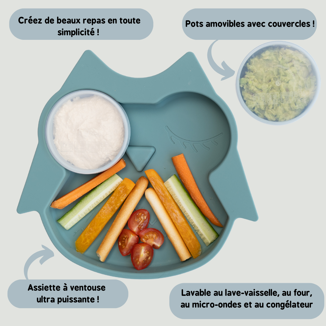 Les pots amovibles divisent l'assiette de bébé en plusieurs parties. Cela permet de créer des repas équilibrés et de favoriser l'acceptation de nouveaux aliments et de nouvelles textures.