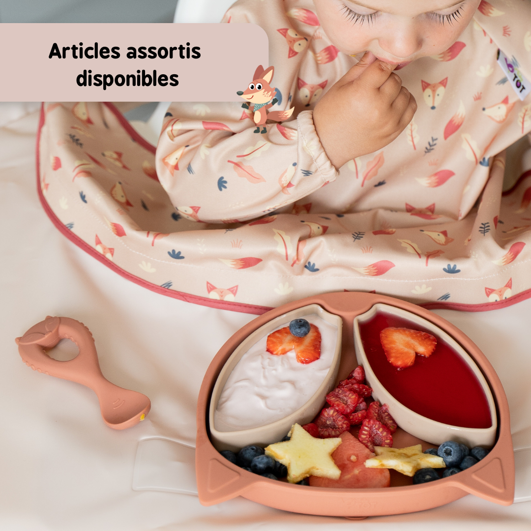 • Collection assortie disponible. Coordonnez votre assiette à ventouse pour bébé avec les cuillères d’apprentissage faciles à saisir et les bavoirs assortis. Un coffret vaisselle bébé qui sera un cadeau de puériculture parfait !