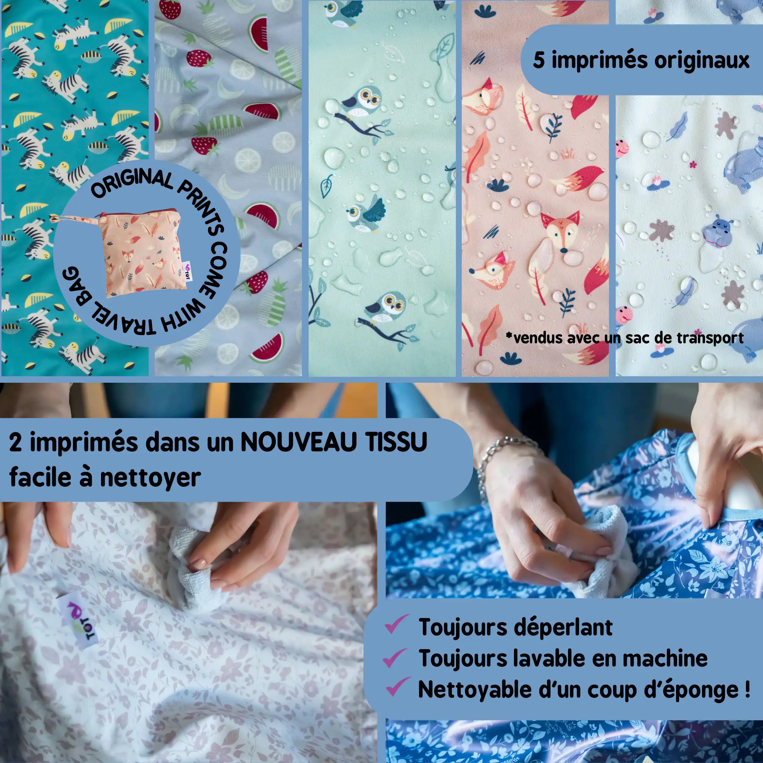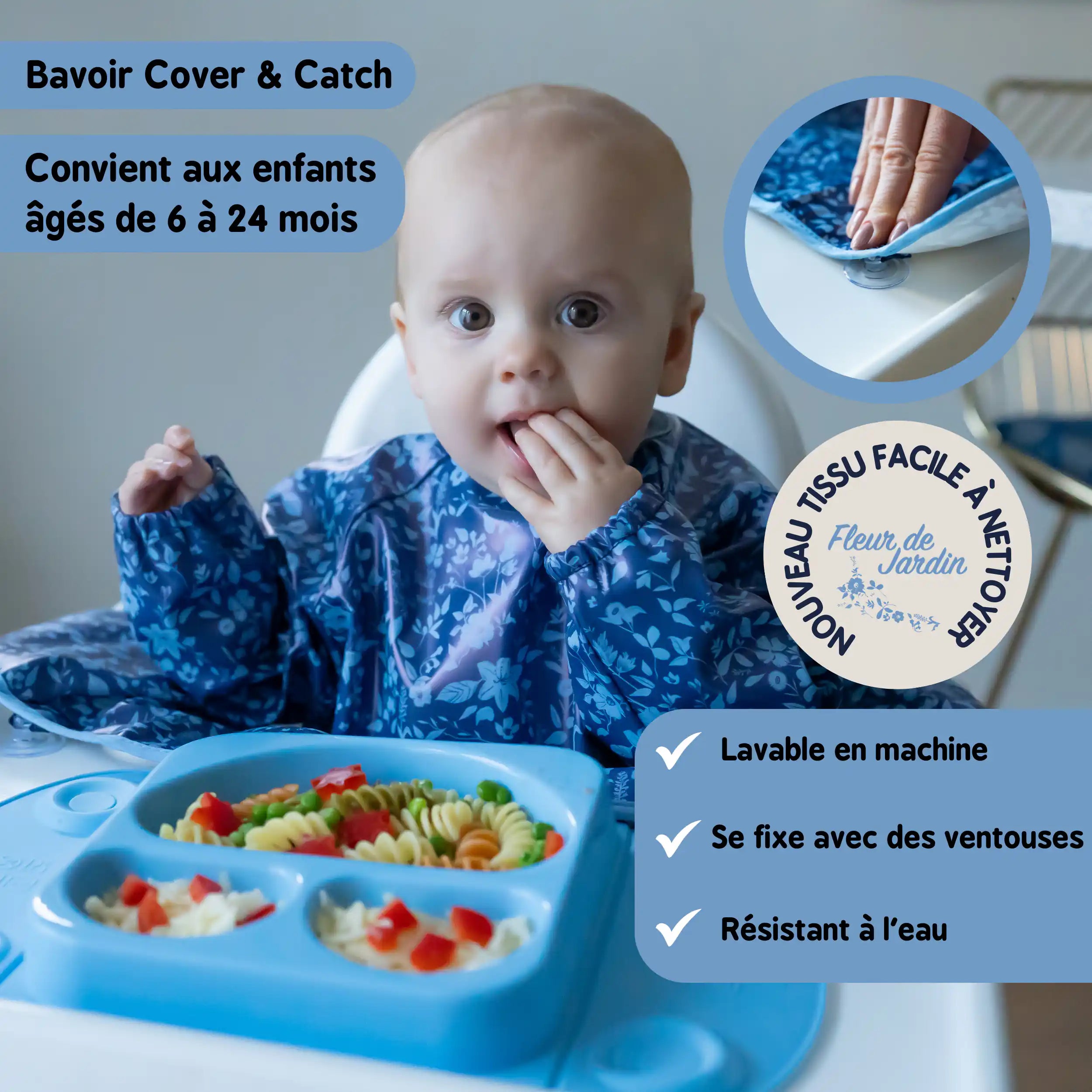Lot d’1 contient 1 x Bavoir Cover & Catch avec sa pochette de transport refermable coordonnée