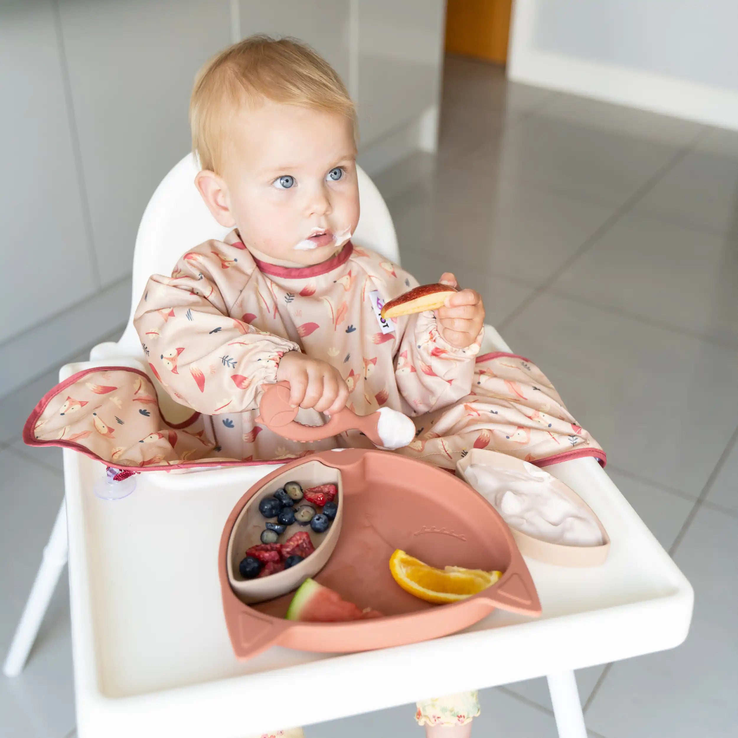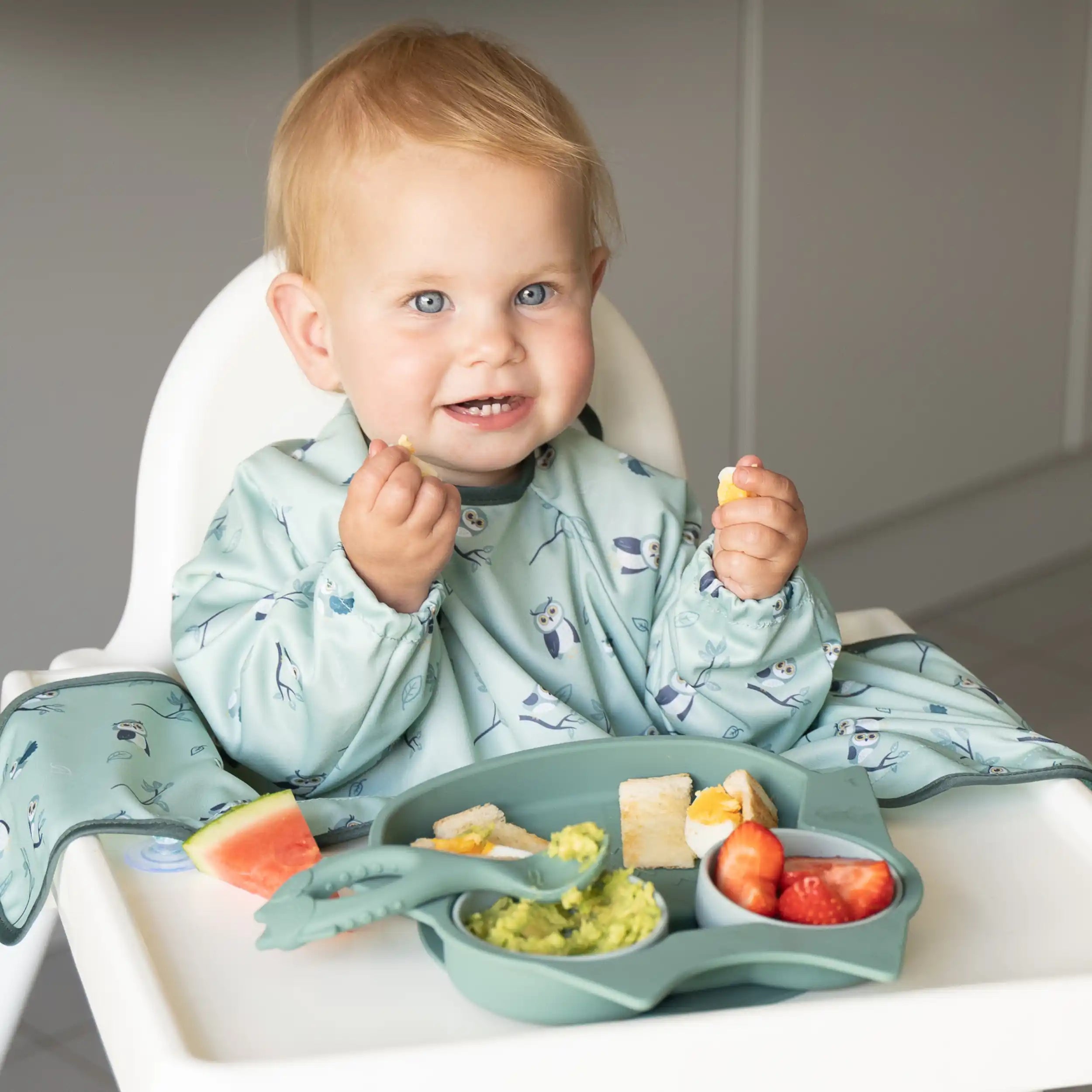 C’est la dernière innovation de bavoir pour la diversification alimentaire de Tidy Tot, cet ingénieux bavoir à manches longues s’attache à n’importe quelle surface lisse pour rattraper la nourriture qui tombe et les éclaboussures.