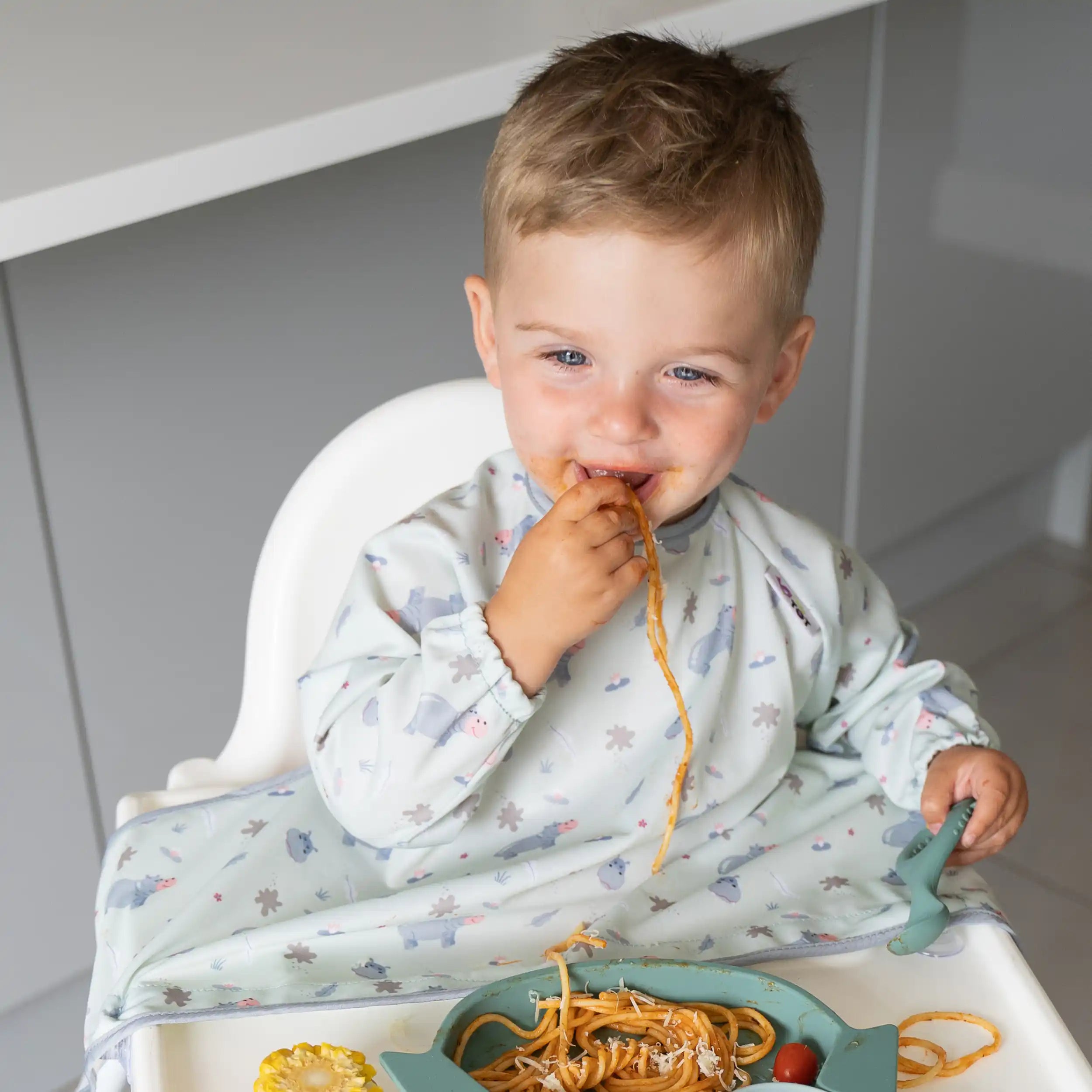 En sachant que les vêtements de bébé sont entièrement protégés, vous pouvez le laisser se concentrer sur les compétences importantes dont il a besoin pour s’entrainer à se nourrir seul – sans toutes les salissures et le stress!