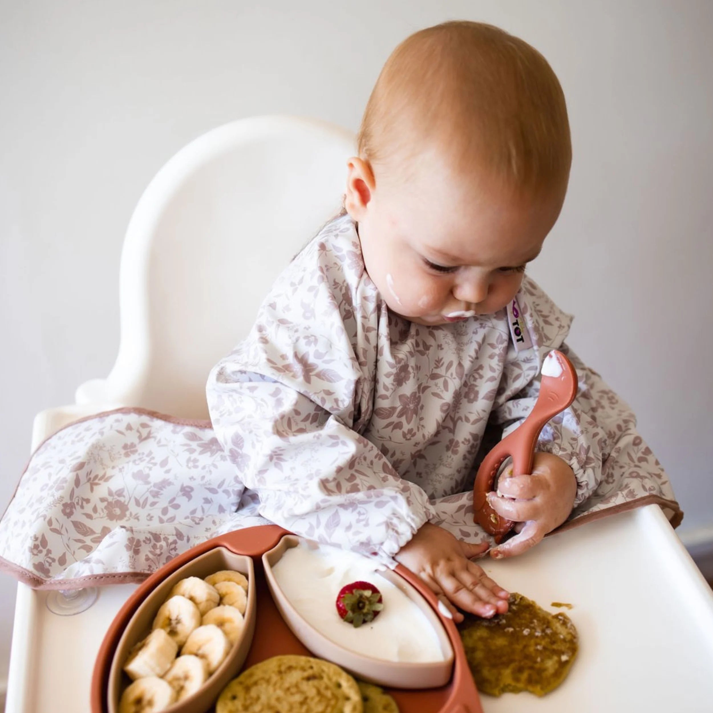 C’est la dernière innovation de bavoir pour la diversification alimentaire de Tidy Tot, cet ingénieux bavoir à manches longues s’attache à n’importe quelle surface lisse pour rattraper la nourriture qui tombe et les éclaboussures.