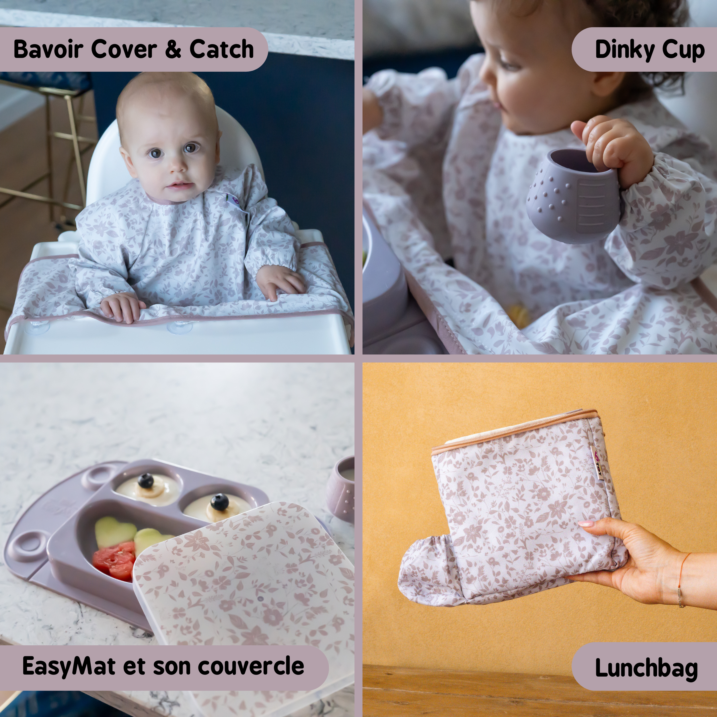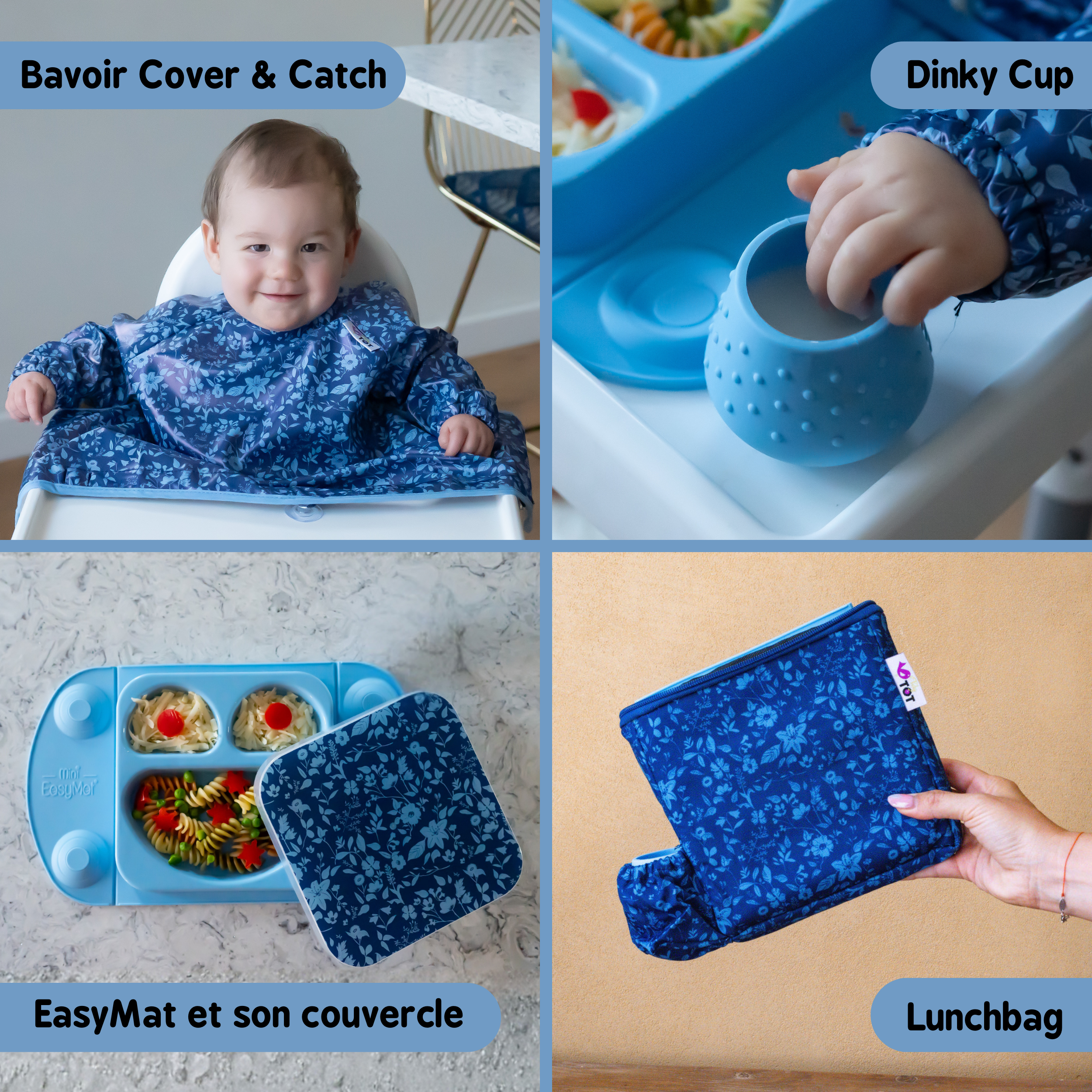 Le Bavoir Cover & Catch – notre bavoir à ventouse primé, dans un tout nouveau tissu facile à nettoyer.