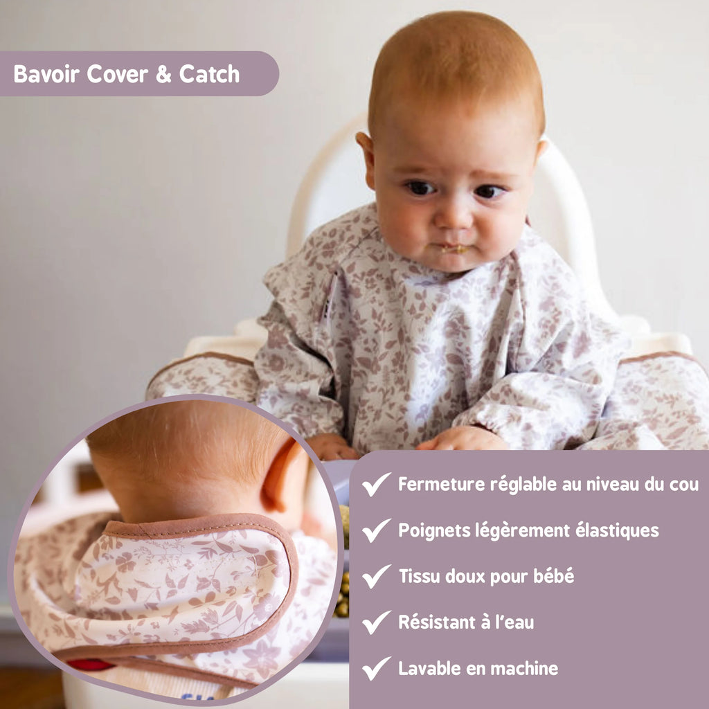 Notre bavoir Cover & Catch signature présente le design sans faille que les parents adorent, ce qui signifie moins de salissures et moins de gaspillage à chaque repas.