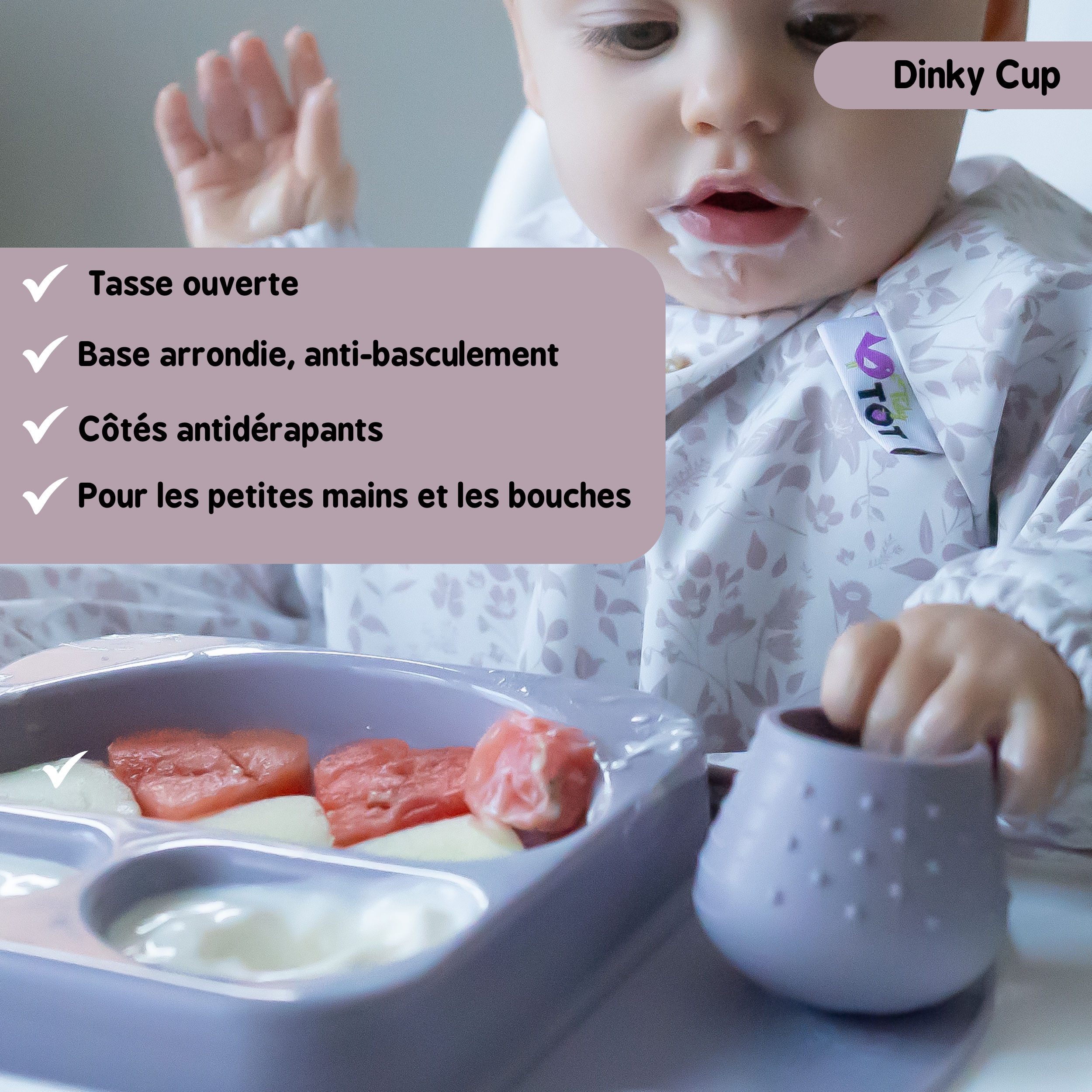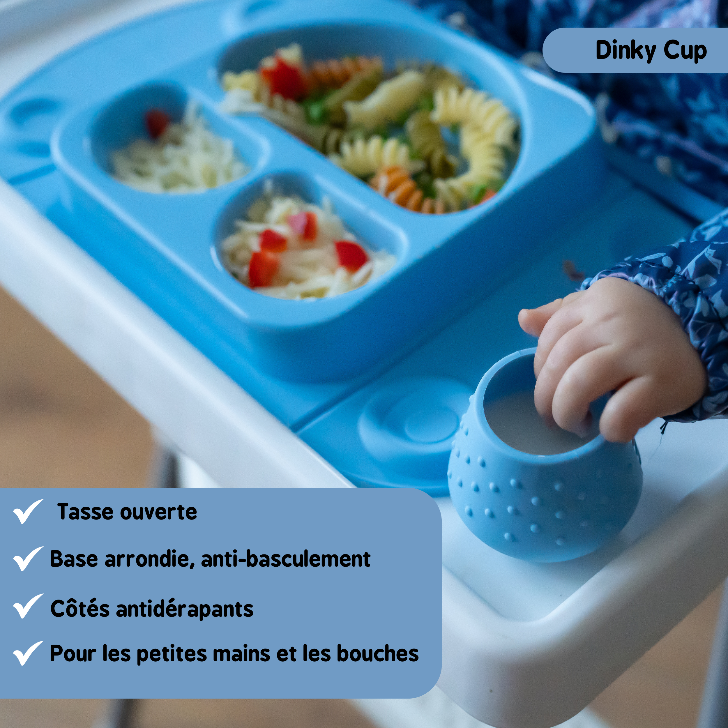 Notre Dinky Cup, best-seller de la marque, est spécialement conçue pour aider les bébés à apprendre à boire dans une tasse ouverte dès l'âge de 4 mois environ.