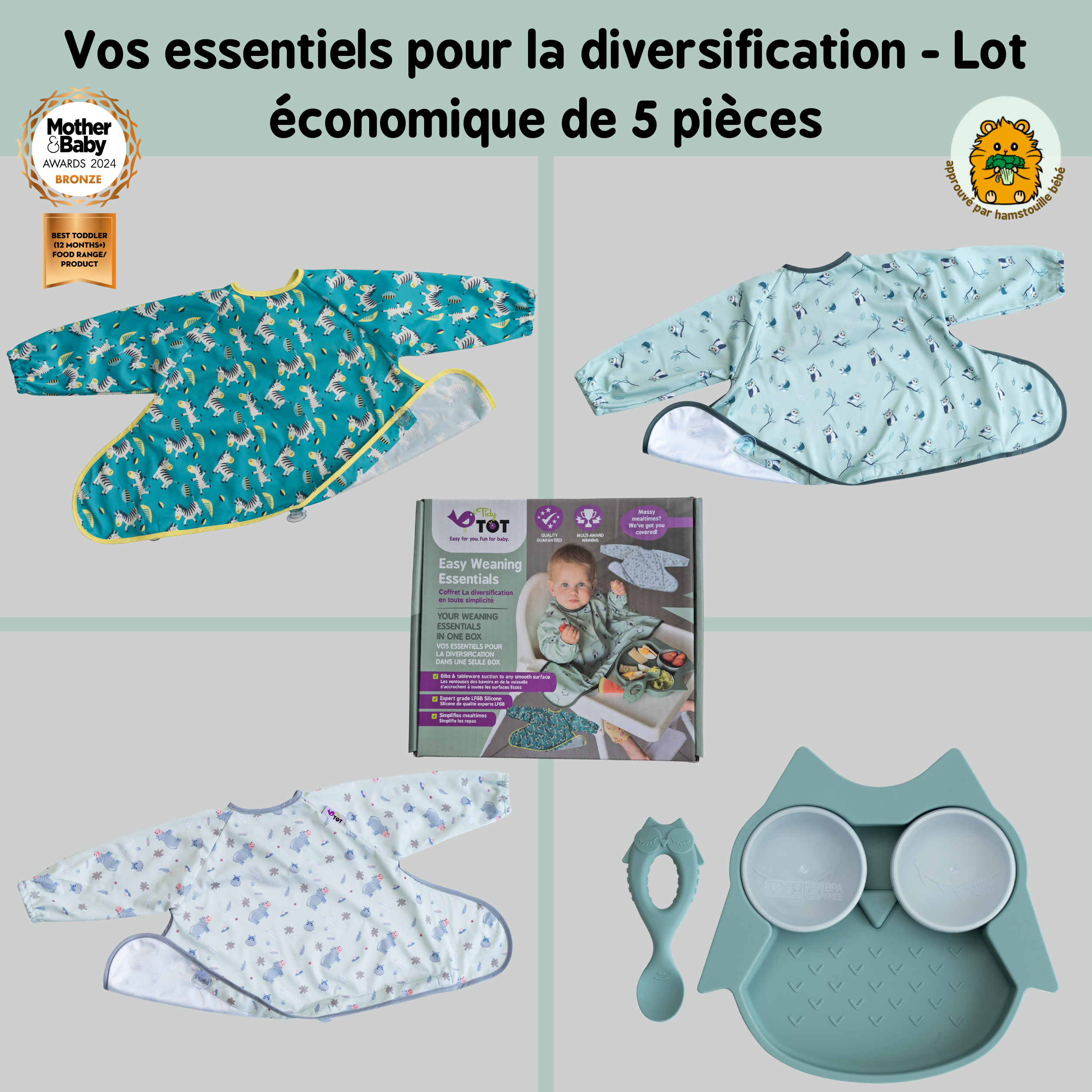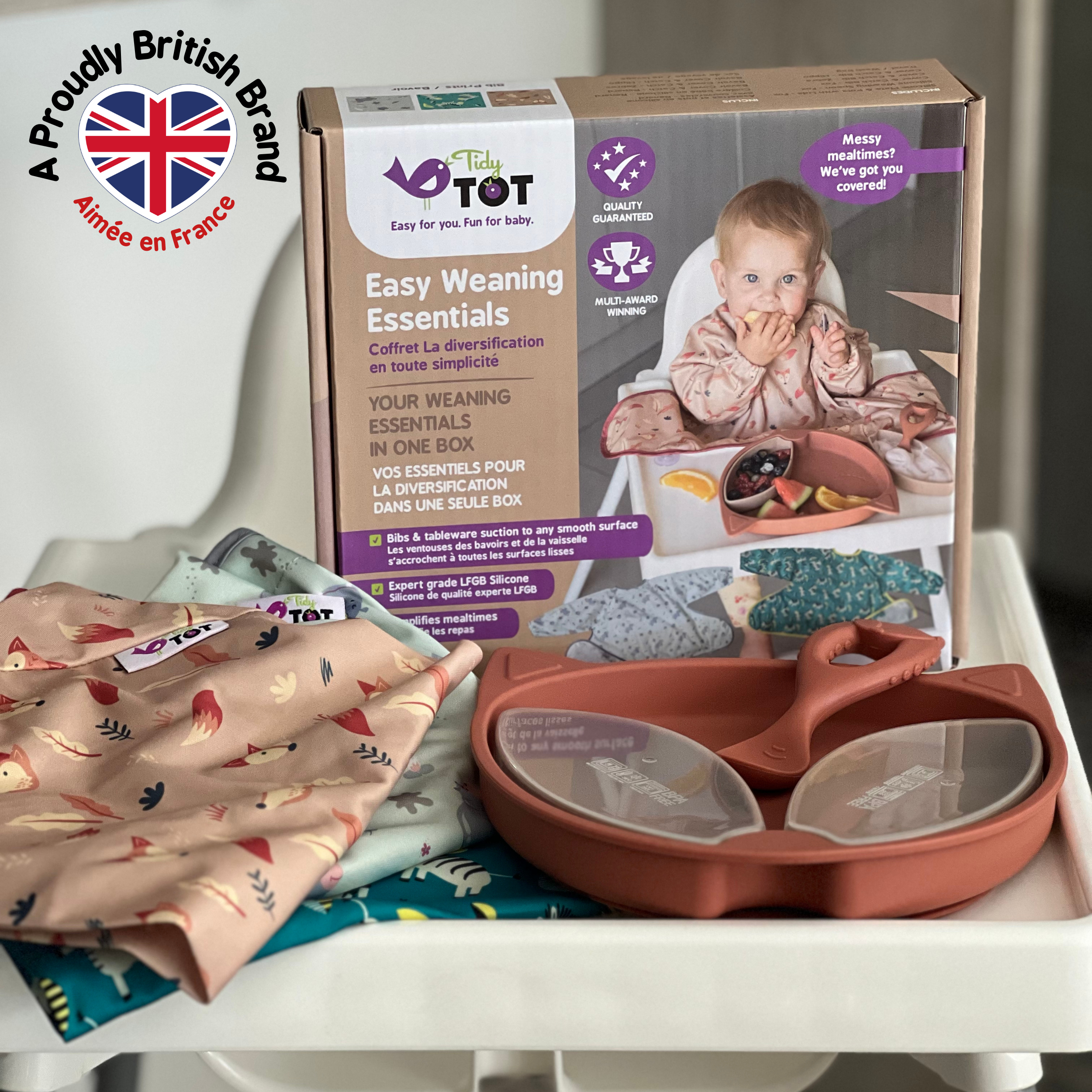 C’est la dernière innovation de bavoir pour la diversification alimentaire de Tidy Tot, cet ingénieux bavoir à manches longues s’attache à n’importe quelle surface lisse pour rattraper la nourriture qui tombe et les éclaboussures.