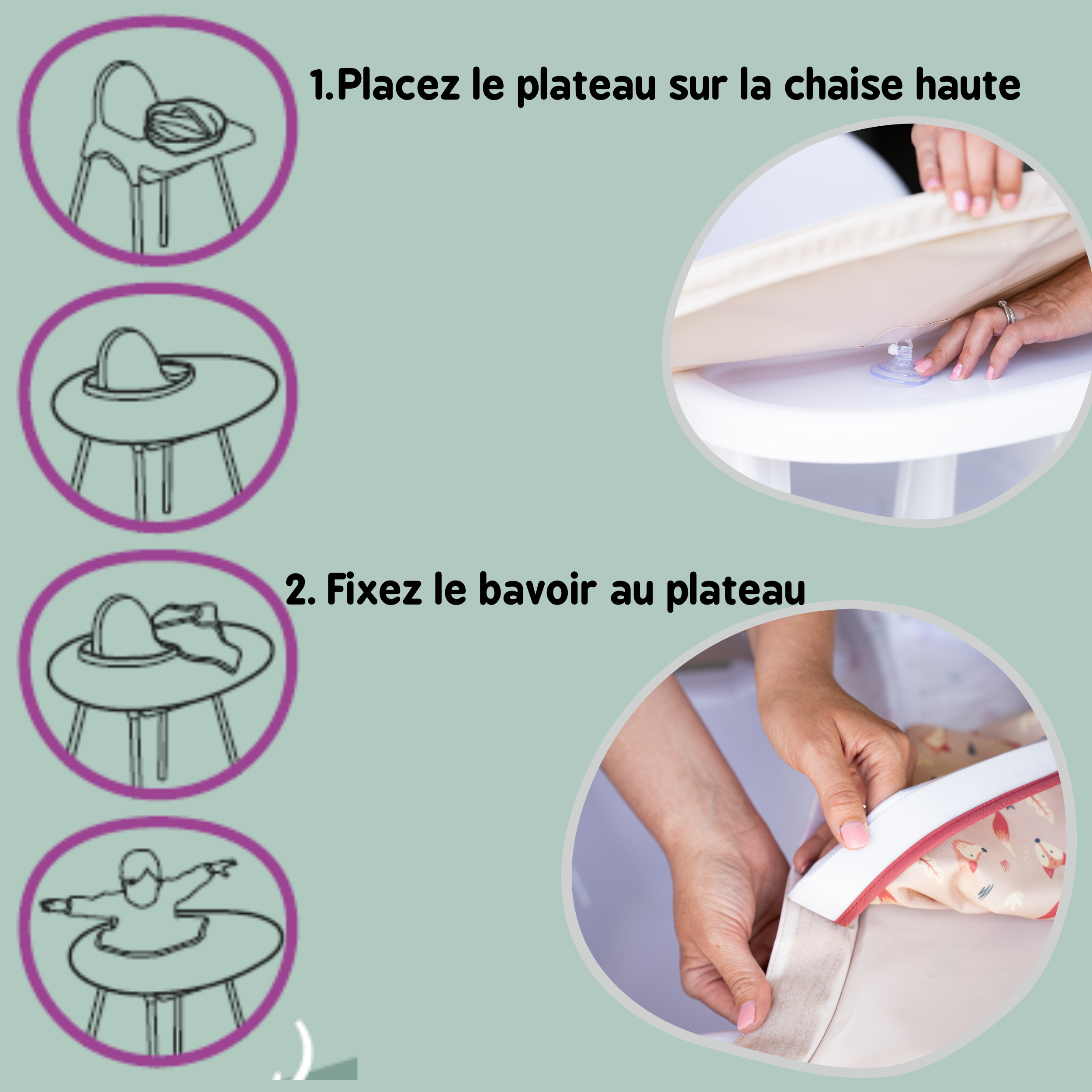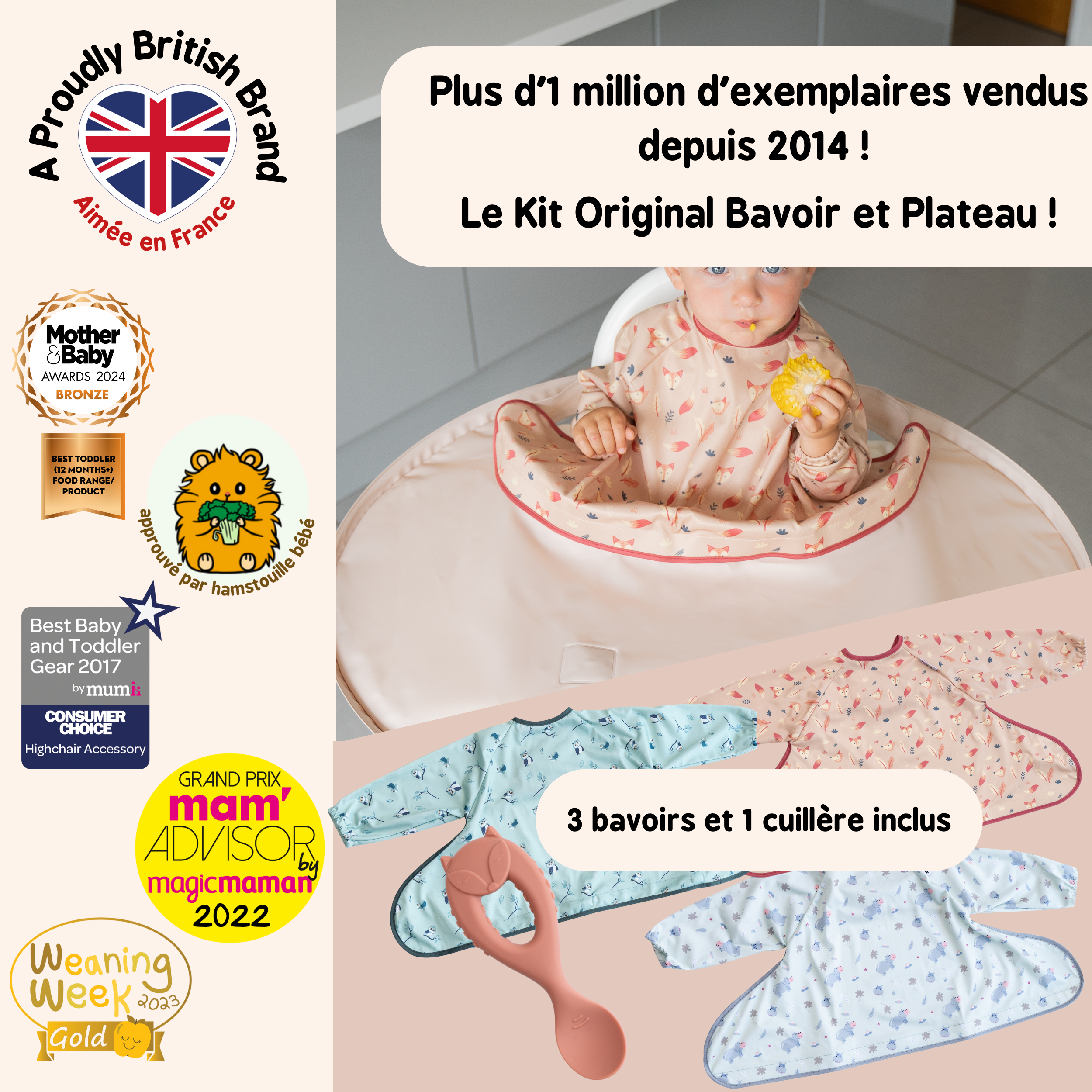 - Inclus 1 plateau et 3 bavoirs
